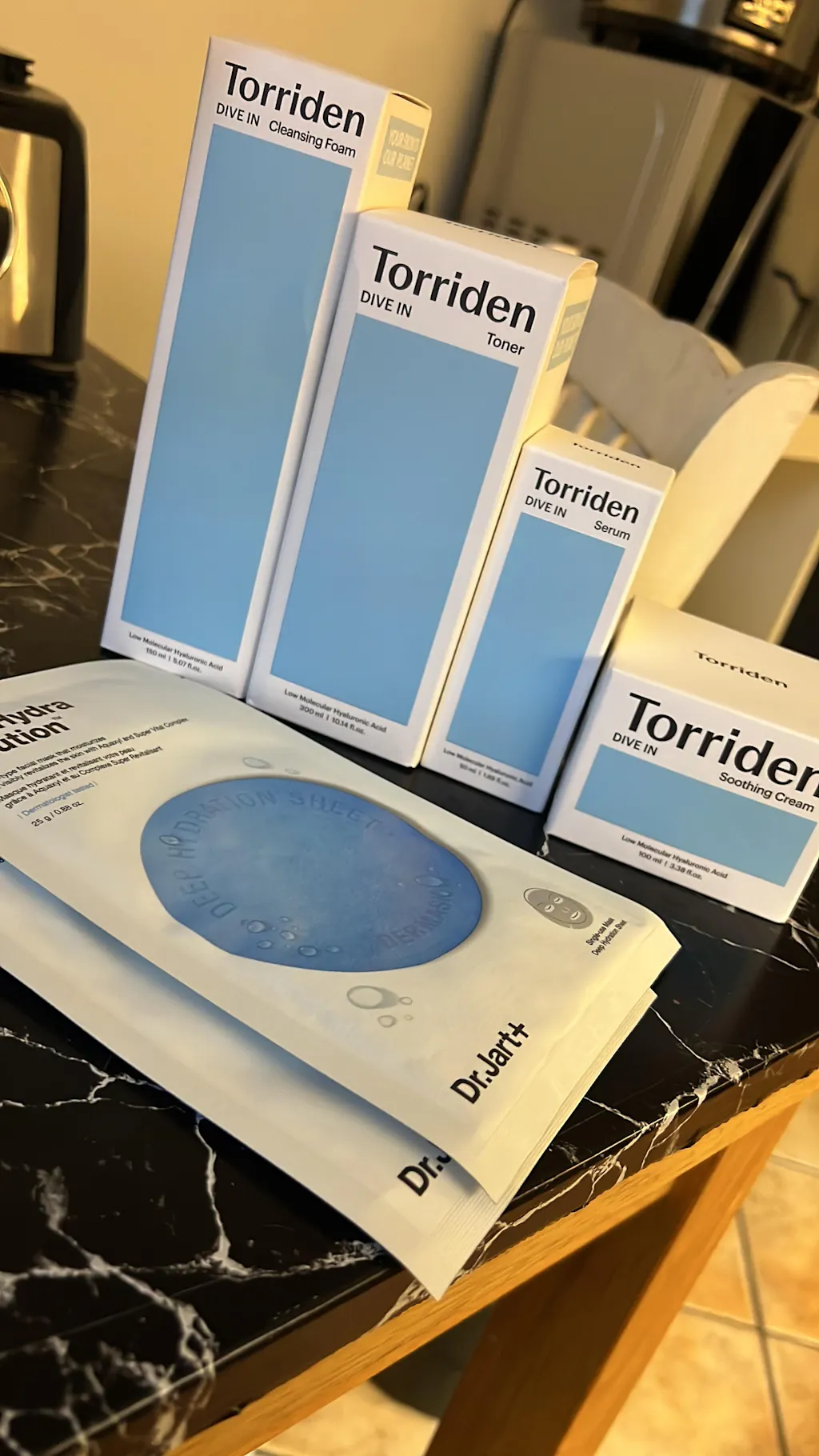 Purified Water, Glycerin, Sodium Cocoyl Glycinate, Sodium Lauroyl Glutamate, Sodium Hyaluronate, Hyaluronic Acid, Hydrolyzed Hyaluronic Acid, Sodium Acetylated Hyaluronate, Hydroxypropyl Trimonium Hyaluronate Hydrolyzed Sodium Hyaluronate, Sodium Hyaluronate Crosspolymer, Potassium Hyaluronate, Panthenol, Allantoin, Trehalose, Tocopherol, Hamamelis Virginiana (Witch Hazel) Extract, Camellia Sinensis Leaf Extract, Chamomilla Recutita (Matricaria) Extract, Butylene Glycol, Dipropylene Glycol, Hydroxypropyl Starch Phosphate, Glyceryl Stearate Se Potassium Benzoate, Sodium Chloride, Polyquaternium-67, Sodium Acetate, 1,2-Hexanediol, Citric Acid, Ethylhexyl Glycerin, Disodium EDTA, Malachite Extract.